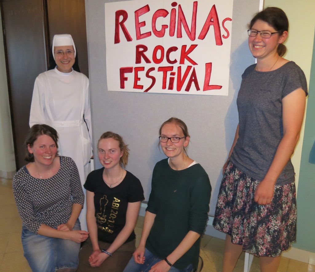 Am Gedenktag „Maria, Hilfe der Christen“ (24. Mai) war für uns im Mutterhaus noch ein weiterer Anlass zu feiern: Regina Fleischmann – sie arbeitet bei uns im Garten – bat um Aufnahme in die Kandidatur. Die drei Postulantinnen bereiteten ihr einen „rockigen“ Empfang.