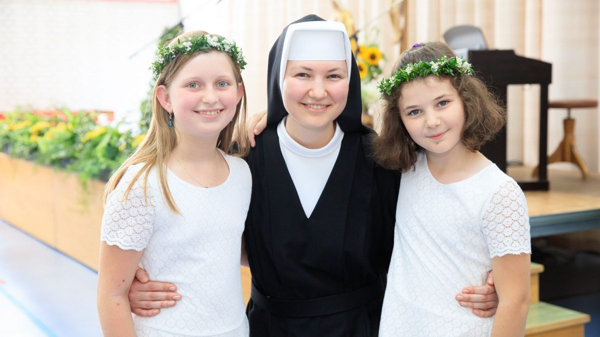 Die ewige Profess legten S. M. Klarissa und S. M. Ancilla in die Hände der Generaloberin Mutter Anezka ab. Die vier Novizinnen S. M. Alojsia, S. M. Karla, S. M. Josefina und S. M. Bernadette vertauschten den weißen mit dem schwarzen Schleier und legten die Gelübde auf drei Jahre ab. Erzbischof Dr. Ludwig Schick wies die zahlreiche Gottesdienstgemeinde darauf hin, was Ordensleben zeigt: „dass Gott die Quelle des Glücks ist und unser Herz in Gott ankommen muss, um glücklich zu werden.“ An die Festtagskinder gewandt, sprach er: „Werden Sie in der Freundschaft mit Christus glücklich und zeigen Sie das auch den Menschen! Machen Sie Ihn zu Ihrem Ein und Alles. Dann wird alles zur Quelle der Freude werden!“ Fotos
