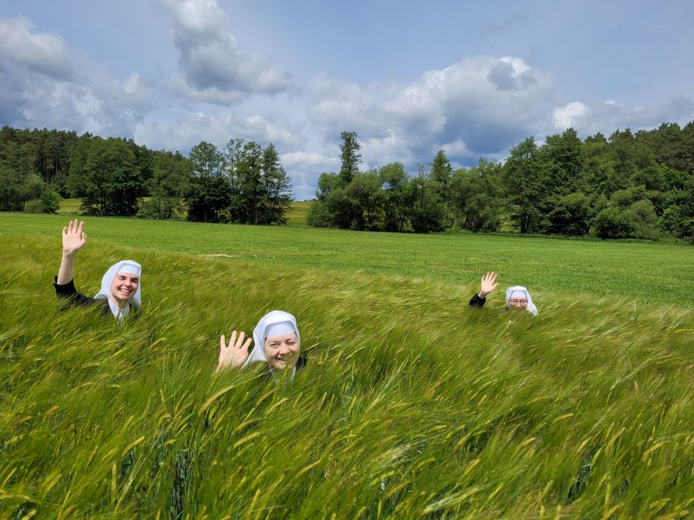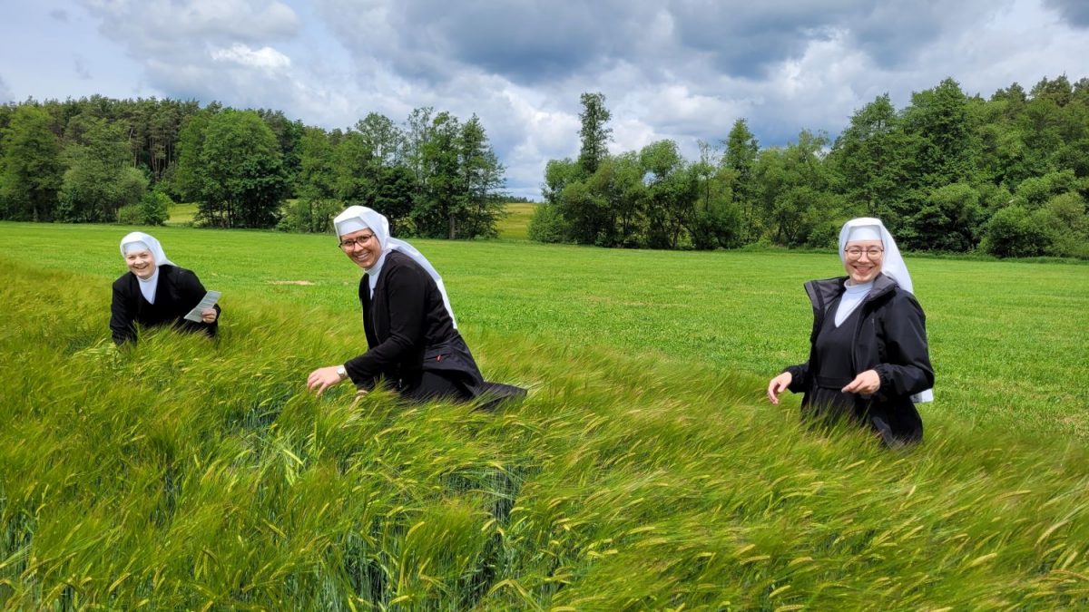 Waldbaden war gestern. Der neue Trend heißt Baden im Gerstenfeld. Die Novizinnen haben es ausprobiert. Scherz! Es ging ihnen dabei nicht um mentale oder physische Gesundheit. Sie haben schlichtweg einen im Gerstenfeld verlorengegangenen Bumerang gesucht, der leider eine ungeplante Flugrichtung genommen hat. Zwar war die Suche erfolglos, aber das Baden zeigte Wirkung: Das Kleid und das Schuhwerk mussten einer gründlichen Reinigung unterzogen werden. Trotzdem bereuten die Novizinnen diese Suchaktion nicht. Das geruhsame Verweilen in Gottes Schöpfung, die Wahrnehmung mit allen Sinnen führen unwillkürlich zum Lobpreis der Güte Gottes. Einfach selber ausprobieren!