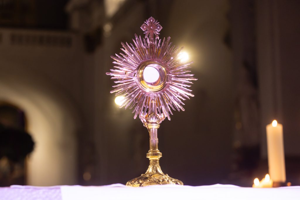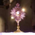 Während der anschließenden Anbetung bis 21:30 Uhr folgten viele Besucher des Adventsmarktes, der an diesem Abend in der Fußgängerzone stattfand, der Einladung und kamen in die Kirche. Es war ein besonderes Erlebnis für sie, eine Kerze anzuzünden und am Fuße des Altars, auf dem die Monstranz mit dem Allerheiligsten stand, zu den vielen anderen brennenden Kerzen dazuzustellen. So mancher verweilte davor still und dankbar im Gebet.