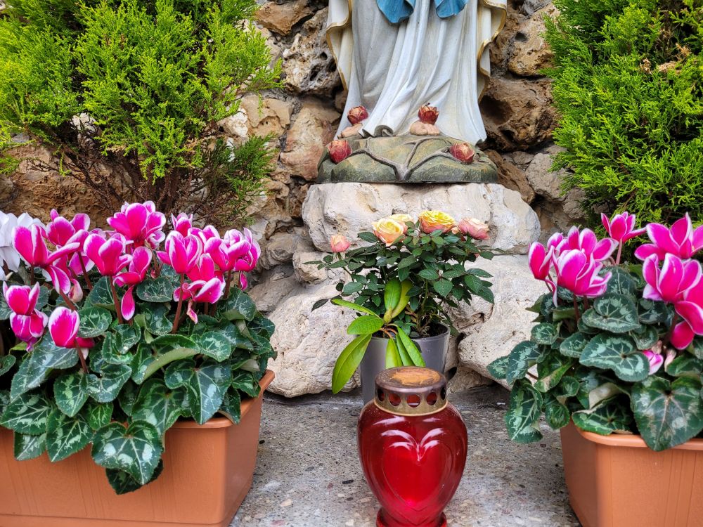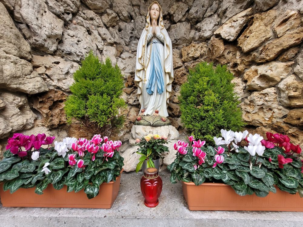 Der Weg in unserem Park führt zur Mariengrotte; denn sie, Maria, hat uns das Licht geboren: unseren Herrn Jesus Christus.