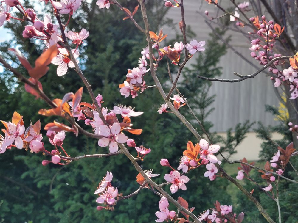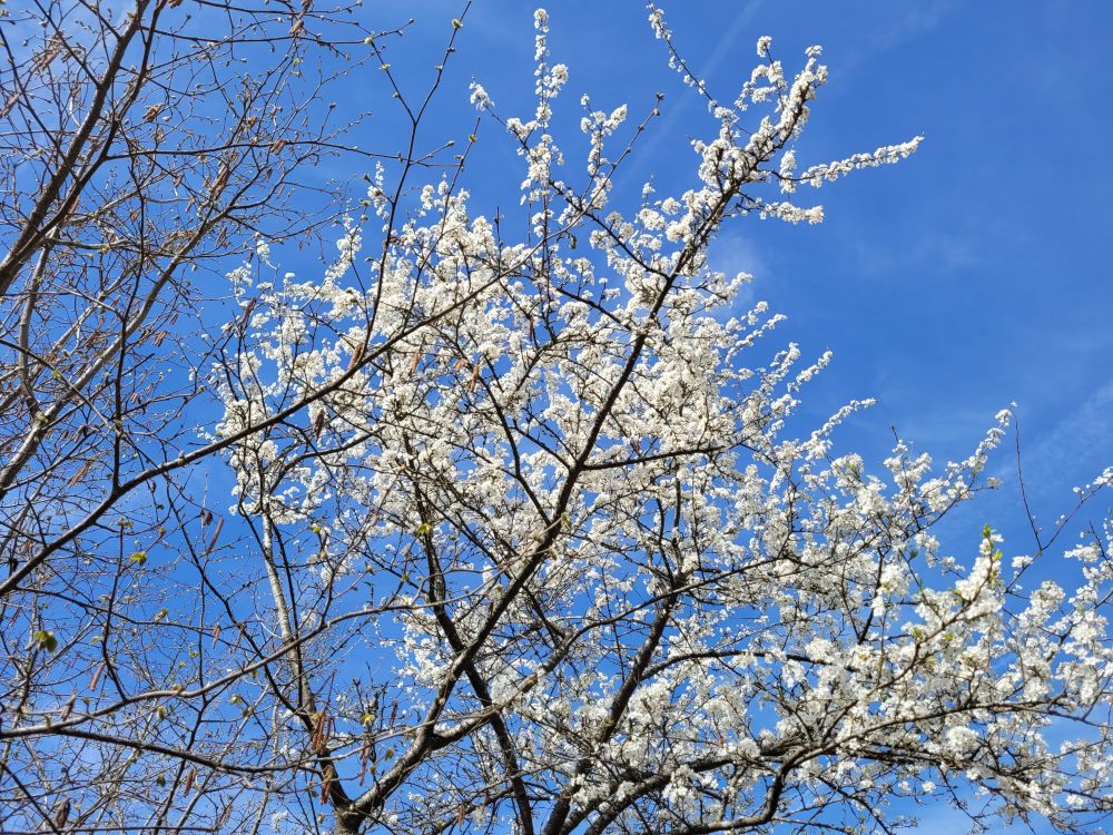 Unter Blüten, der blaue Himmel darüber – paradiesisch! Schade, dass man den Duft nicht auf das Foto bannen kann!