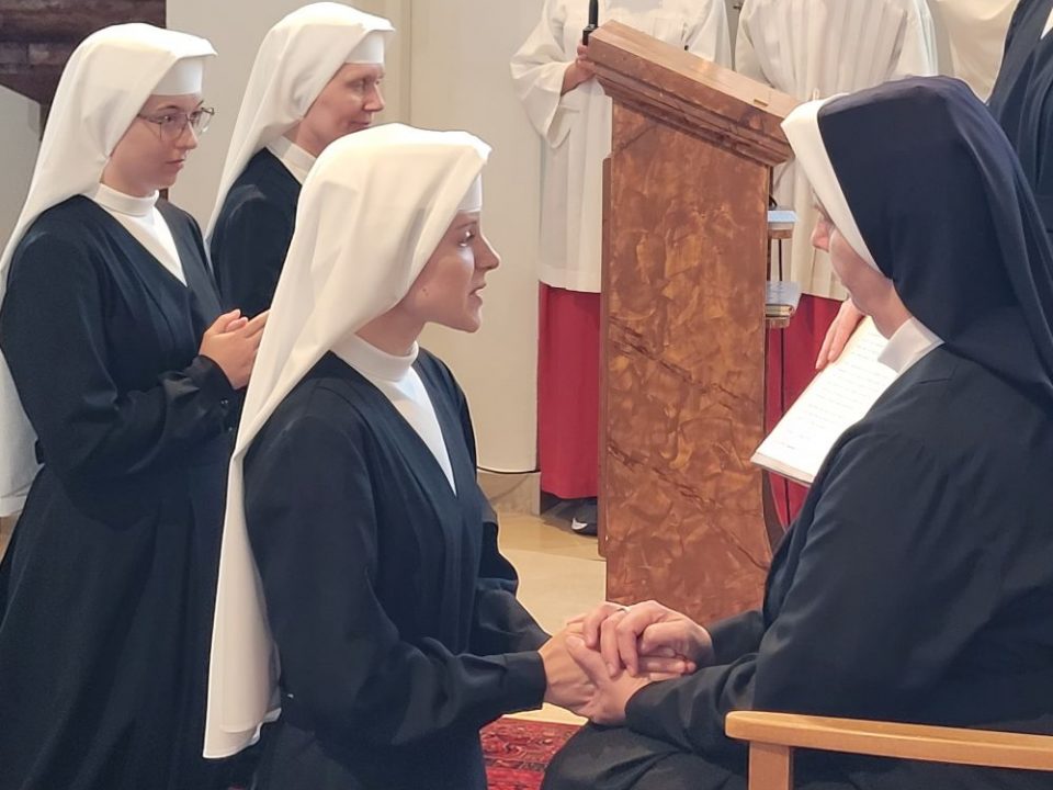 Am Augustinusfest, dem 28. August 2024, nahm Erzbischof Herwig Gössl von Bamberg die Einkleidung der zwei Postulantinnen Theresia und Viktoria in der Mutterhauskirche vor. Neben dem Ordenskleid erhielten sie auch einen neuen Namen: S. M. Angelika und S. M. Madlen. An der Liturgie, gestaltet vom Schwesternchor, nahmen sehr viele Priester und Bekannte der beiden neuen Novizinnen teil. Bis zur Professfeier am Samstag, wenn vier Novizinnen die zeitlichen Gelübde ablegen und die Noviziatszeit beenden, werden im Noviziat neun Novizinnen sein.