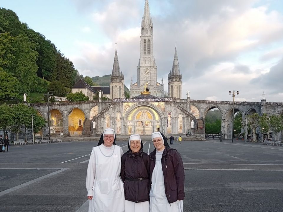 Vom 18. bis 23. Mai 2024 durften drei Schwestern (M. Philippa, M. Martha und M. Bernadette) den Bayerischen Malteserzug nach Lourdes begleiten. Höhepunkte waren die tägliche hl. Messe und die Prozessionen sowie der Besuch der Bäder, wo Hände und Gesicht gewaschen und Wasser aus der Quelle getrunken wurde. Die Begegnung mit den Kranken, aber auch die Zusammenarbeit mit dem Team war für die Schwestern sehr erfüllend und bereichernd.