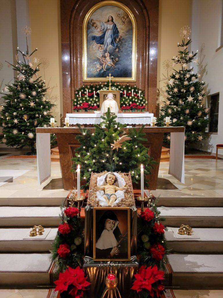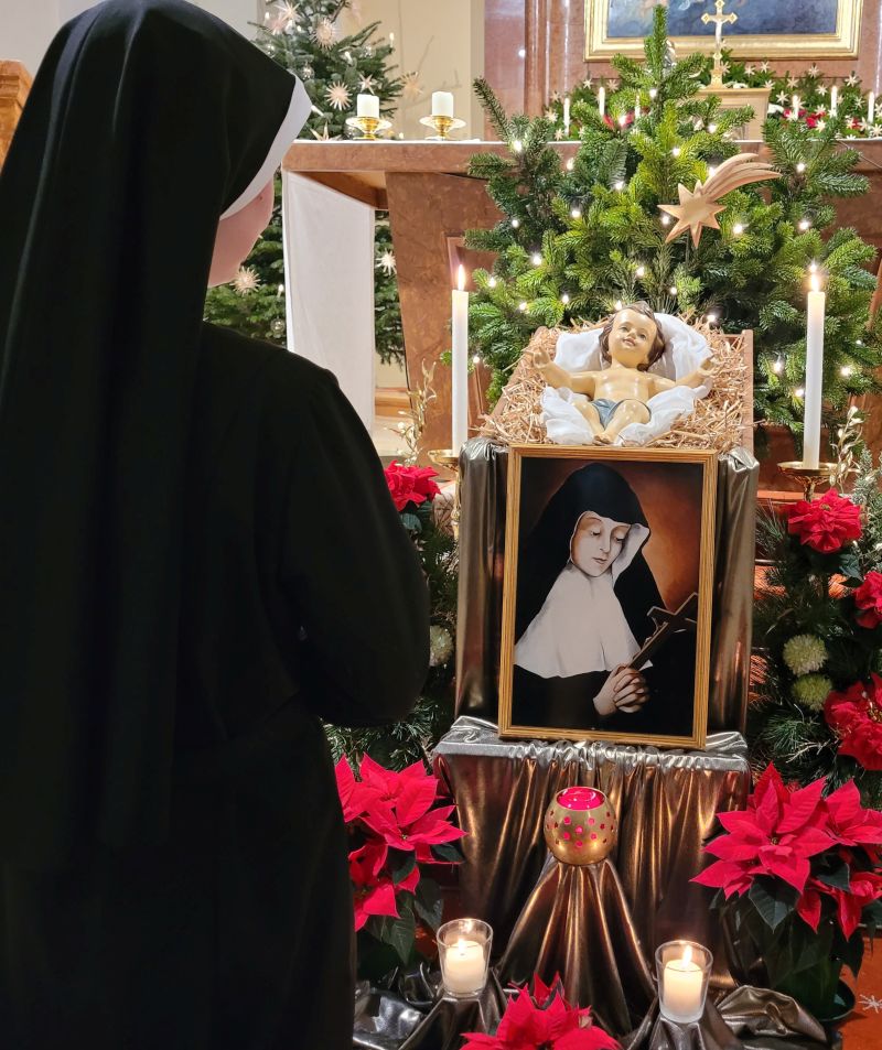 Der 9. Januar ist der Gedenktag unserer Ordensgründerin, der seligen Alix Le Clerc, die im Jahr 1622 kurz vor ihrem 46. Geburtstag (2. Februar) im Kloster in Nancy verstarb. Es war an der Krippe, als sie und vier Gefährtinnen im Jahr 1597 bei der Mitternachtsmesse sich ganz Gott weihten. Von jeher ist das Weihnachtsfest in unserer Kongregation besonders wichtig und feierlich, gilt es doch als das Gründungsdatum unserer Kongregation. Hier sehen wir auch unsere Berufung veranschaulicht: den menschgewordenen Gott und seine grenzenlose Liebe aufzunehmen, in uns wachsen zu lassen (wie die Muttergottes) und ihn zu den Menschen zu tragen, d. h. uns kontemplativ in ihn zu versenken und apostolisch tätig zu sein.