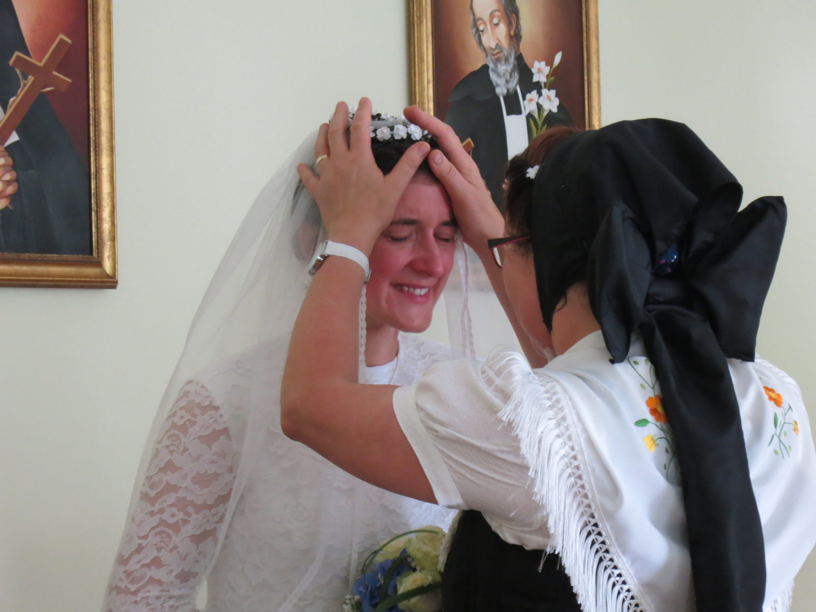 Das Foto oben zeigt eine Postulantin mit ihrer Mutter beim Elternsegen am Tag der Einkleidung.