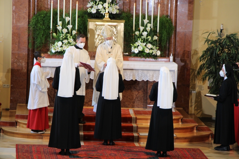 Das Postulat, die unmittelbare Vorbereitung auf die Einkleidung, beträgt ein halbes Jahr. Die Fotos entstanden bei der Postulatsaufnahme von Anne, Margareta und Natalie (2023).