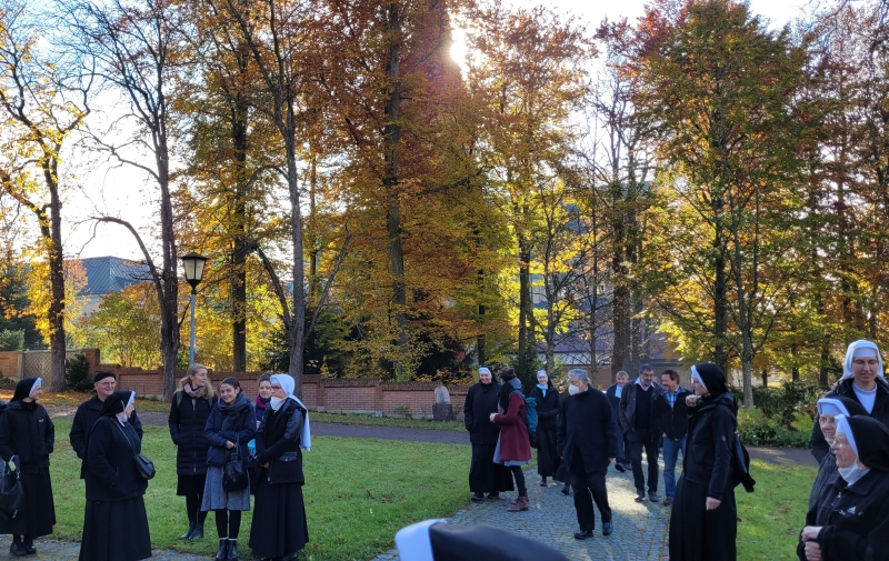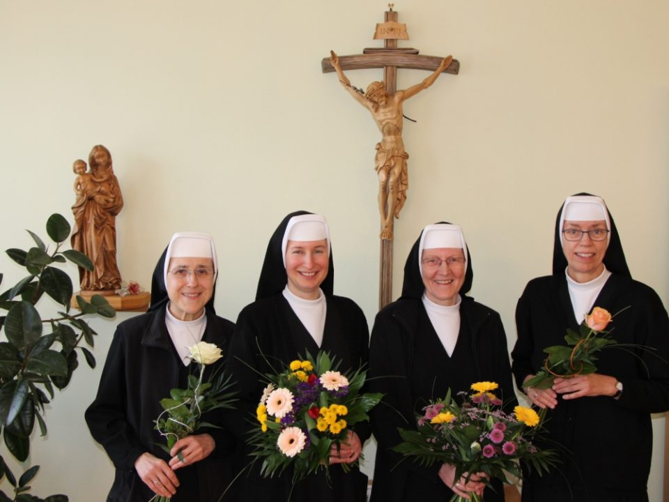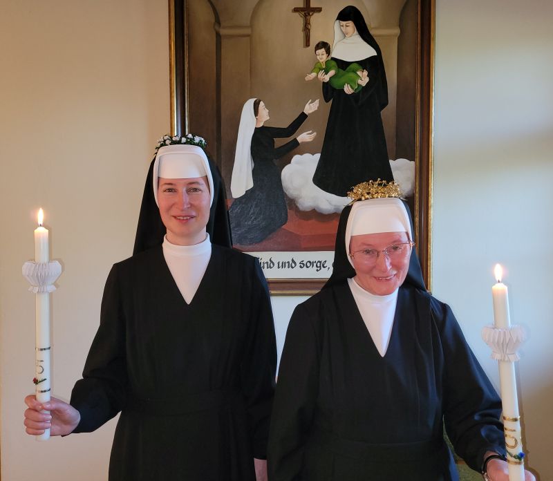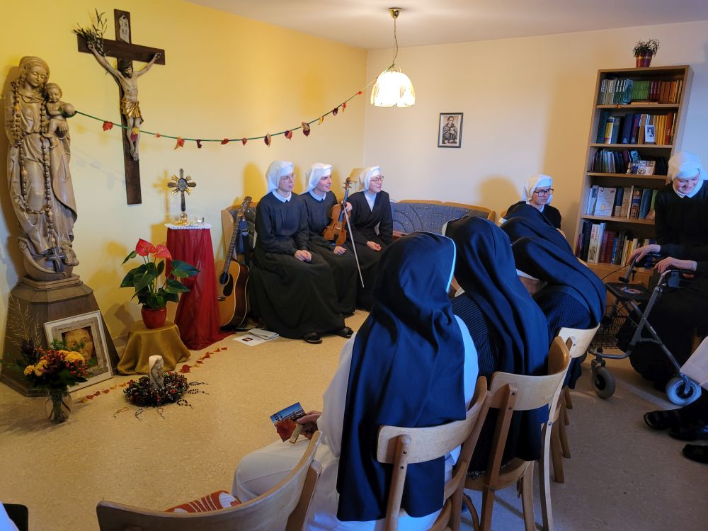 Wenn die Schwestern des Ruheheims ins Noviziat eingeladen werden, gleicht der Weg dorthin einer halben Weltreise; denn das Noviziat liegt am anderen Ende es Mutterhauskomplexes. Nichtsdestotrotz haben sich alle Bewohnerinnen des Ruheheims am 26. Okt. 2024 nachmittags eingefunden, um zusammen mit den Novizinnen den Rosenkranzmonat Oktober zu begehen. Anlass war der österreichische Staatsfeiertag genau an diesem Tag; denn genau vor 69 Jahren wurde Österreich wider Erwarten frei von den sowjetischen Besatzern. Geholfen hat der Aufruf zum Rosenkranzgebet durch P. Petrus Pavlicek, dem sich auch die damaligen Politiker anschlossen. Mit Liedern und einem Rosenkranzgesätzchen gedachten wir dieses geschichtsmächtigen Gebetes.
