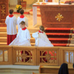 Die kniende Mundkommunion pflegen wir als besonders ausdrucksstarkes Zeichen unseres Glaubens an die reale Gegenwart Christi in der Eucharistie.