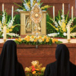 Auch während des Tages besuchen wir immer wieder den Herrn im Tabernakel, um Ihm Lob und Dank, unsere Bitten, unsere Leiden und Freuden und unsere Anbetung darzubringen.